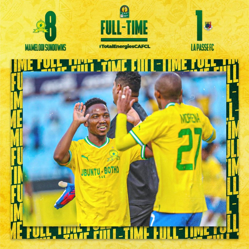 Sundowns progressed to the next round of the CAF Champions League after defeating La Passe of Sychelles 8-1 on Friday night, and 15-1 on aggregate. The aggregate result was the second heaviest they’ve ever inflicted on an opponent in CAF knockout history, behind only the 16-1 aggregate victory over Cope d’Or in 2019/20, also from the Seychelles.